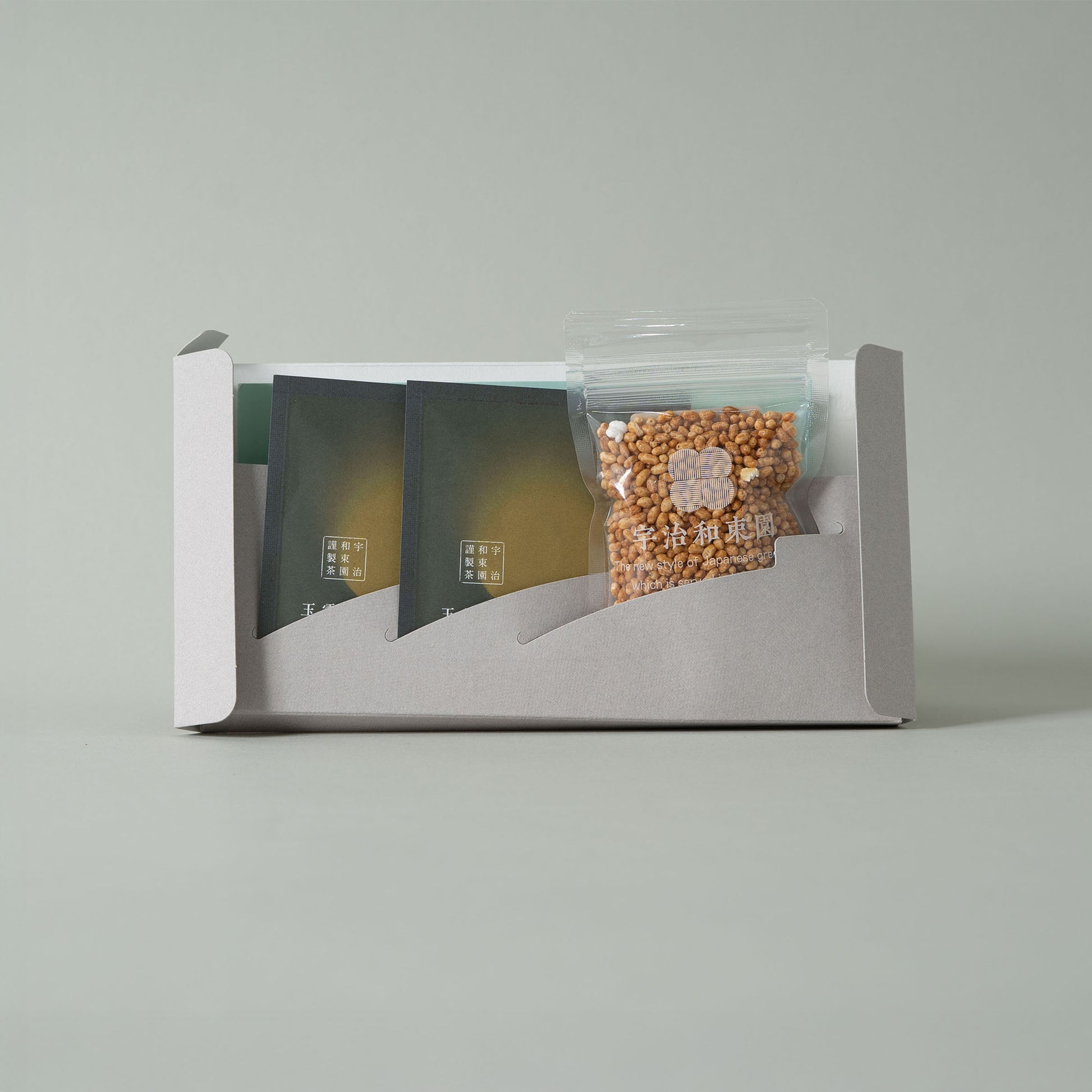 玉露のドリップバッグで一煎目を丁寧に淹れた後、もち米玄米を加えた二煎目へ。玉露ならではの深い甘みと旨みに、炒りもち米の香ばしさが溶け込み、味わいに新しい奥行きが生まれます。